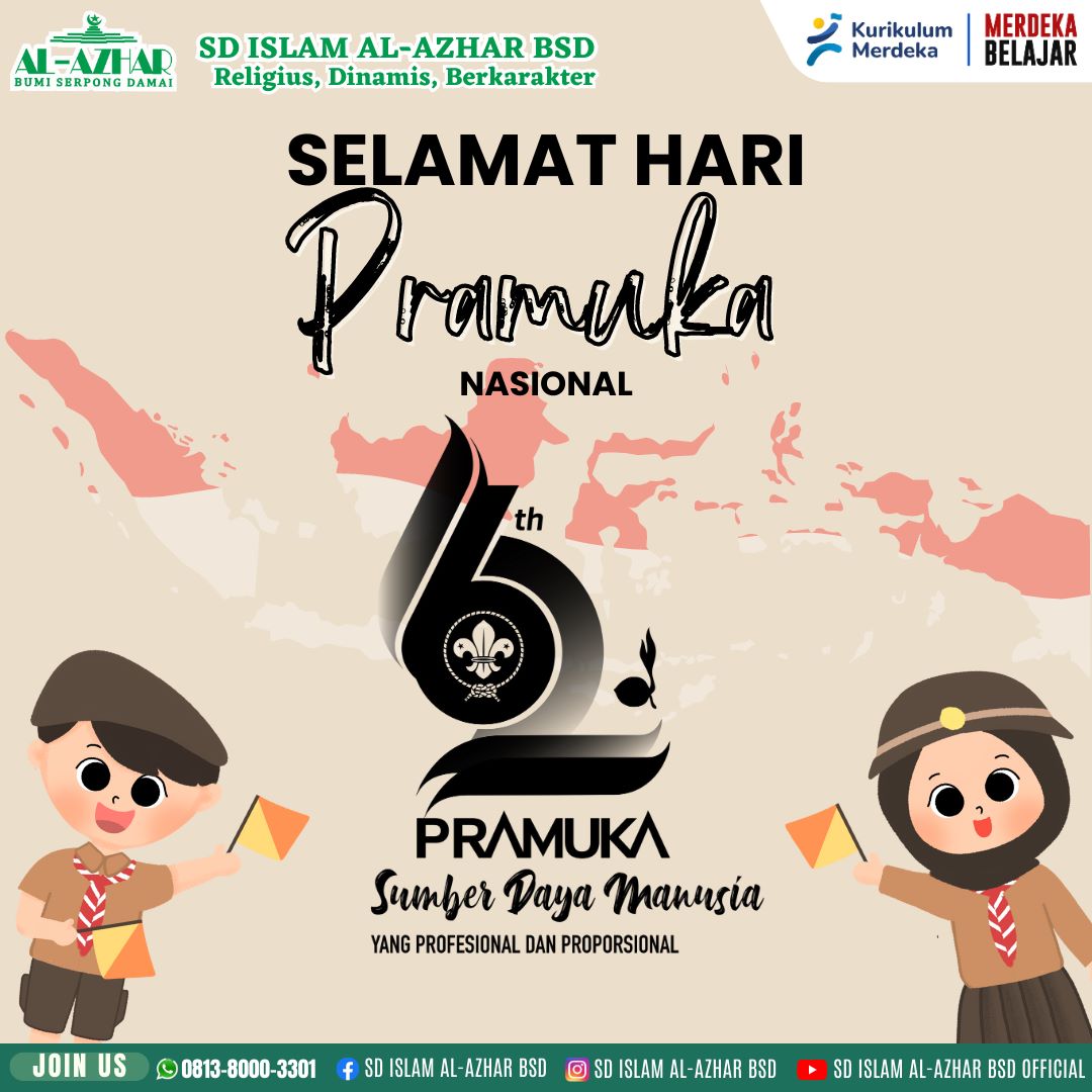 SD Islam Al-Azhar BSD mengucapkan Selamat Hari Pramuka ke-62 pada tanggal 14 Agustus 2023 dengan tema : "Sumber Daya Manusia yang Profesional dan Proporsional"